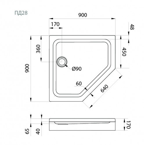 • Модель: Поддон душевой 90х90 низкий (ПД28)