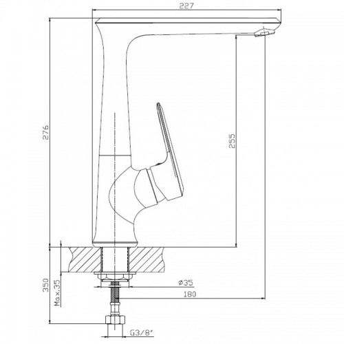 Модель оснащена высоким поворотным U-образным изливом, который обеспечивает удобство при мытье объемной посуды. Высота излива составляет 255 мм, длина — 180 мм.