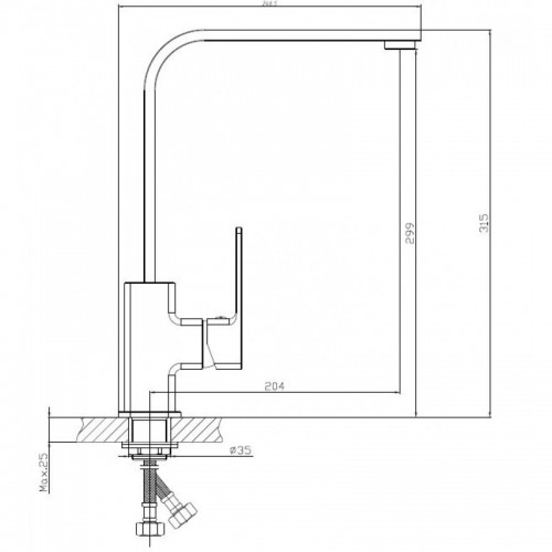 Надежный монтаж: Установка на мойку с креплением на гайку. В комплекте — гибкая подводка из нержавеющей стали длиной 55 см с подключением 1/2”.