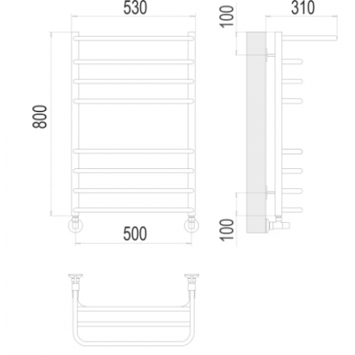 Модель «Арктур» от Terminus — это прекрасное дополнение для ванной комнаты в классическом или индустриальном стиле. Главная особенность прибора — прогреваемая по периметру полка, которая не только добавляет функциональности, но и служит стильным элементом декора. Выступающие перекладины обеспечивают удобную сушку полотенец, а увеличенная глубина (310 мм) позволяет эффективно использовать пространство. Сочетание квадратных стоек (30х30 мм) и круглых перекладин (Ø18 мм) придаёт модели современный и элегантный вид.