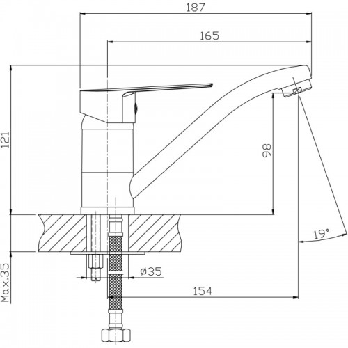 2. Простая установка: Модель предназначена для монтажа на умывальник и поставляется в комплекте с гибкой подводкой из нержавеющей стали и всеми необходимыми крепежными элементами.