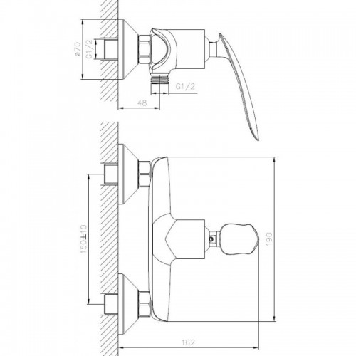 Это настенный смеситель, предназначенный для установки в душевой кабине или нише. В комплект входит всё необходимое для комфортного принятия душа.