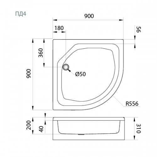 • Модель: Поддон душевой 90х90 средний (ПД4)