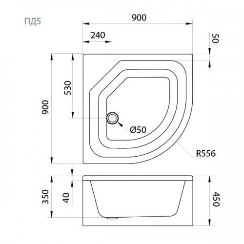 Душевой поддон ПД5 от компании «Тритон» — это уникальное решение, сочетающее в себе функции душевого поддона и компактной ванны. Благодаря увеличенной глубине (350 мм) и общей высоте 450 мм, он идеально подходит для семей с маленькими детьми, для купания домашних питомцев или для тех, кто предпочитает принимать дождевой душ с возможностью набора воды. Полукруглая форма с радиусом 556 мм оптимальна для угловой установки.