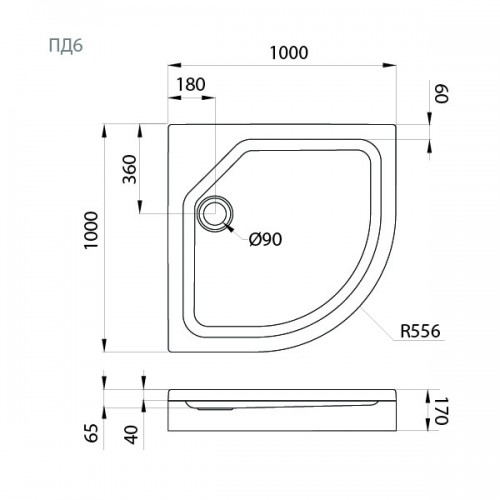 • Модель: Поддон душевой 100х100 низкий (ПД6)