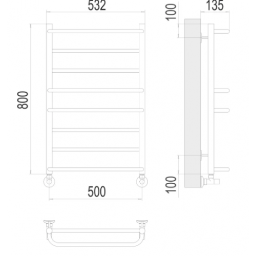 Модель «Евромикс» от Terminus создана для любителей комфорта. Её главная особенность — конструкция с выступающими перекладинами, которая обеспечивает удобное размещение полотенец и быструю сушку. Благодаря увеличенной глубине (135 мм) и 8 перекладинам, несколько полотенец полностью высохнут всего за 38 минут. Эстетичный внешний вид идеально подойдёт для классического стиля интерьера, добавляя ванной комнате уют и функциональность. Модель относится к доступной серии «Эконом».